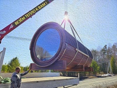 Закажите 4, 5 или 6 метровую баню-бочку сейчас и получите её в полностью собранном виде в свой город, при этом не заплатив ни копейки за доставку!