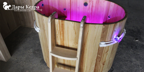 Кедр — влагостойкий материал с приятным хвойным ароматом, мало усыхает. Природный антисептик, насыщает воду и воздух вокруг фитонцидами, благотворно влияющими на здоровье.